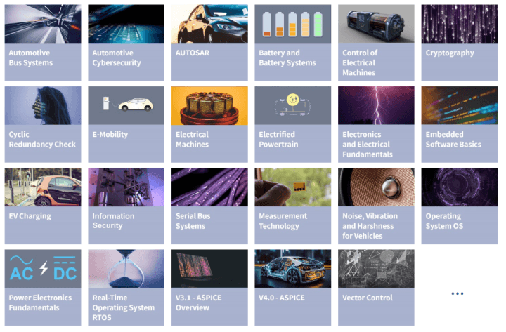 Hilfreich für die Fokussierung ist die Orientierung an 13 sogenannten Jobprofilen. für die jeweils unterschiedliche Lernmodule zusammengestellt wurden. Genannt seien hier beispielhaft Embedded Software Developer, Automotive Basic Software Developer, Automotive Application Software Developer, Automotive Software Quality Engineer, Automotive Project Manager, Electromobility Software Developer und Charging Station Developer. Durch die Zuspitzung bekommen Lernwillige ein zielgerichtetes Basiswissen zu den hinter den Jobprofilen stehenden Herausforderungen und Aufgaben.Die Kurse sind browserbasiert und dazu jederzeit sowie von jedem Ort aus zugänglich. Die Möglichkeit, Inhalte beliebig oft zu wiederholen, ermöglicht ein Lernen im individuellen Tempo und sorgt so für gute Lernergebnisse. Zusätzliche Funktionen wie eine Liste erklärter Abkürzungen und ein Glossar vermitteln wertvolles Hintergrundwissen. Alle Kurse sind englisch, einige zusätzlich deutsch. Hinter allen technische Inhalten stehen Fachexperten mit umfassendem Fachwissen und praktischer Erfahrung.